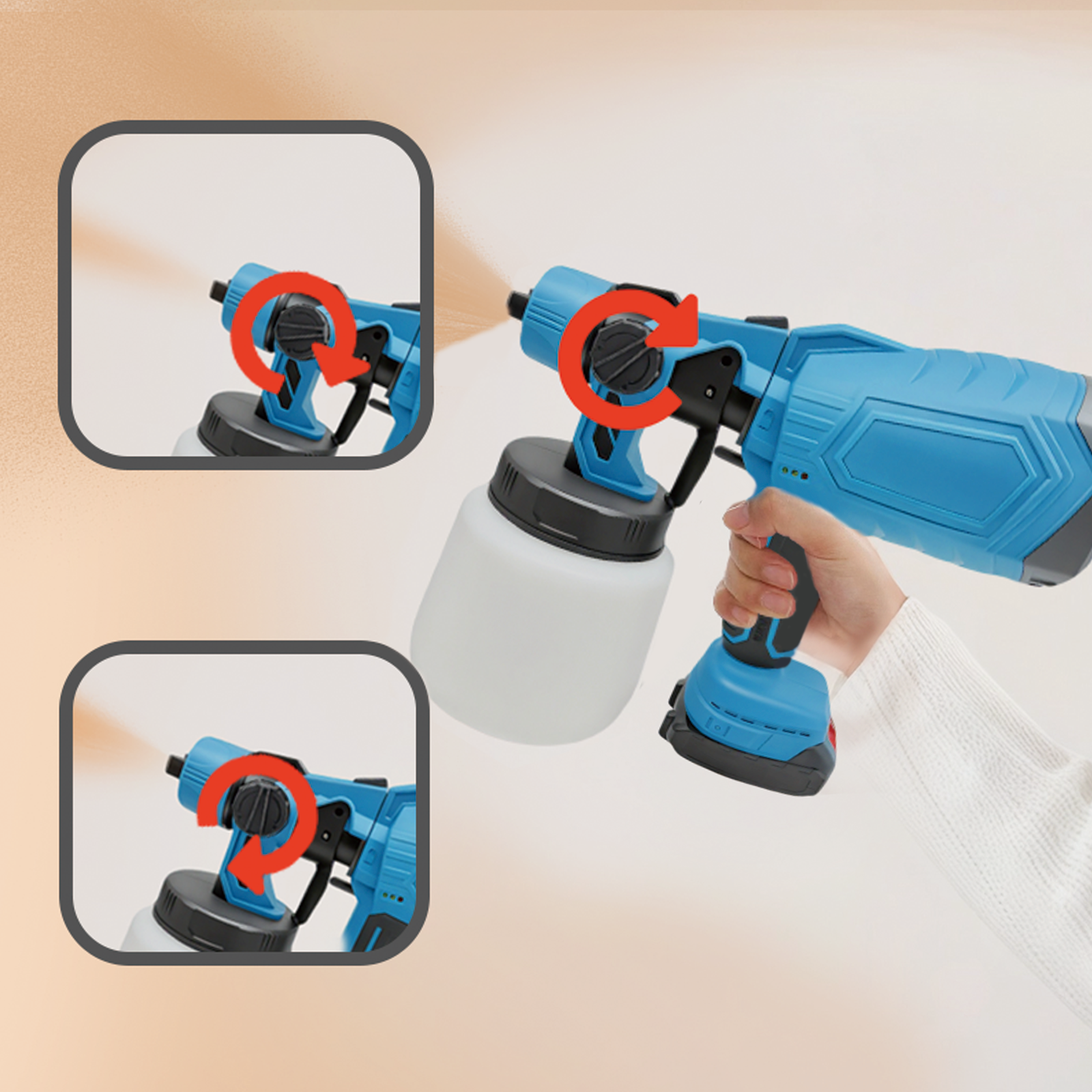 With a simple twist, you can easily switch between three different spray patterns—horizontal, vertical, and circular. This allows for precise control whether you're quickly painting a large wall or working on narrow areas like door frames and furniture, helping you get the perfect finish.