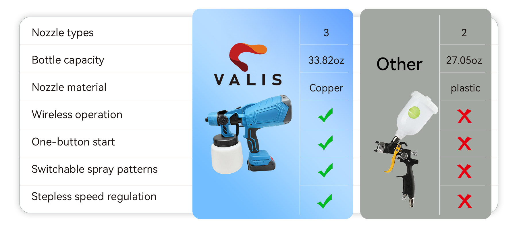 That’s how the Valis Cordless Paint Sprayer was born. Its powerful yet user-friendly design makes spraying effortless while delivering flawless results. This reflects Valis’s core promise: transforming tedious chores into a creative joy, so you can focus on the art of your work.